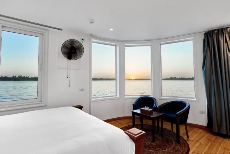 Sailing on the Fatima Dahabiya is all about relaxation and refinement. Whether you are enjoying a quiet moment on the sundeck, dining under the stars, or simply watching the Nile drift by, every detail is designed to create a serene and unforgettable experience with Egypt Top Tours.
