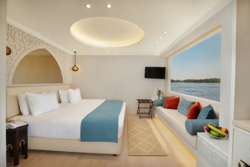 - Spacious cabins with panoramic Nile views
