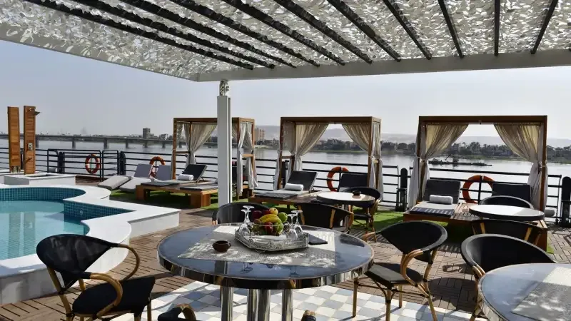 Sail the Nile in style aboard the Mayfair Nile Cruise with Egypt Top Tours, where luxury and comfort meet timeless history. The MS Mayfair Nile Cruise offers a refined experience between Luxor and Aswan across five elegant decks, featuring beautifully appointed public areas, a spacious sun deck perfect for relaxation, and cozy cabins with first-class service. From the warm hospitality to the breathtaking views of ancient Egypt’s wonders, your journey on the Mayfair Cruise will be unforgettable. Book your luxury escape now with Egypt Top Tours