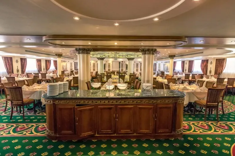 Launched in 2006, the Sonesta St. George Nile Cruise features all-suite accommodations, including 47 deluxe cabins (with options on the main and upper decks), 9 Presidential Suites, and 1 Royal Suite—each exquisitely furnished with high-end finishes and upscale amenities. Every cabin offers panoramic windows, allowing you to soak in uninterrupted views of the Nile’s timeless beauty.
