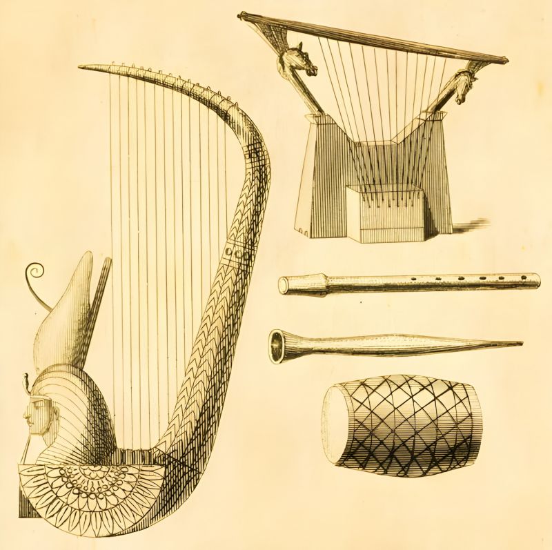 The sistrum, harp, and flute were commonly used in temple rituals to honor him and other music-related deities.